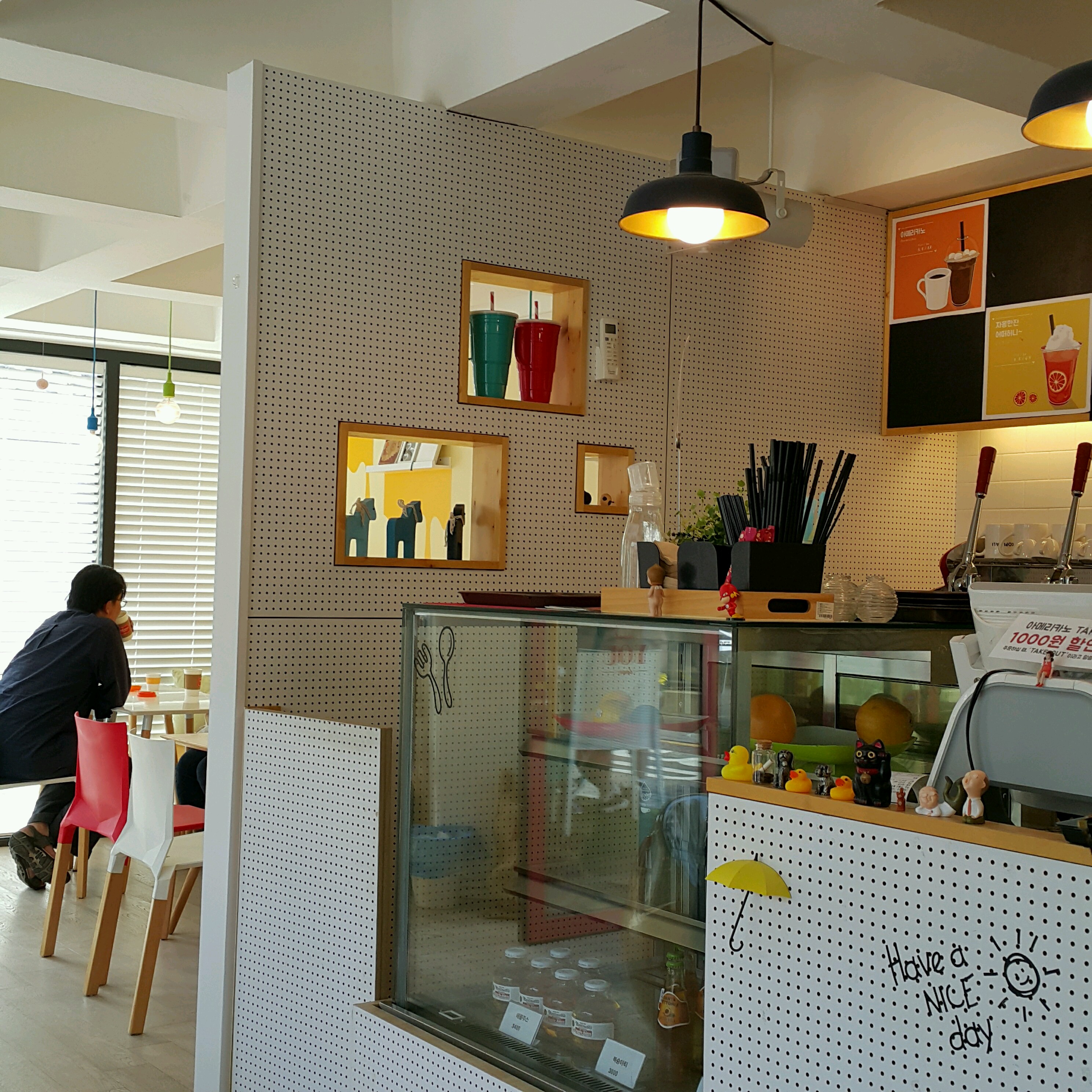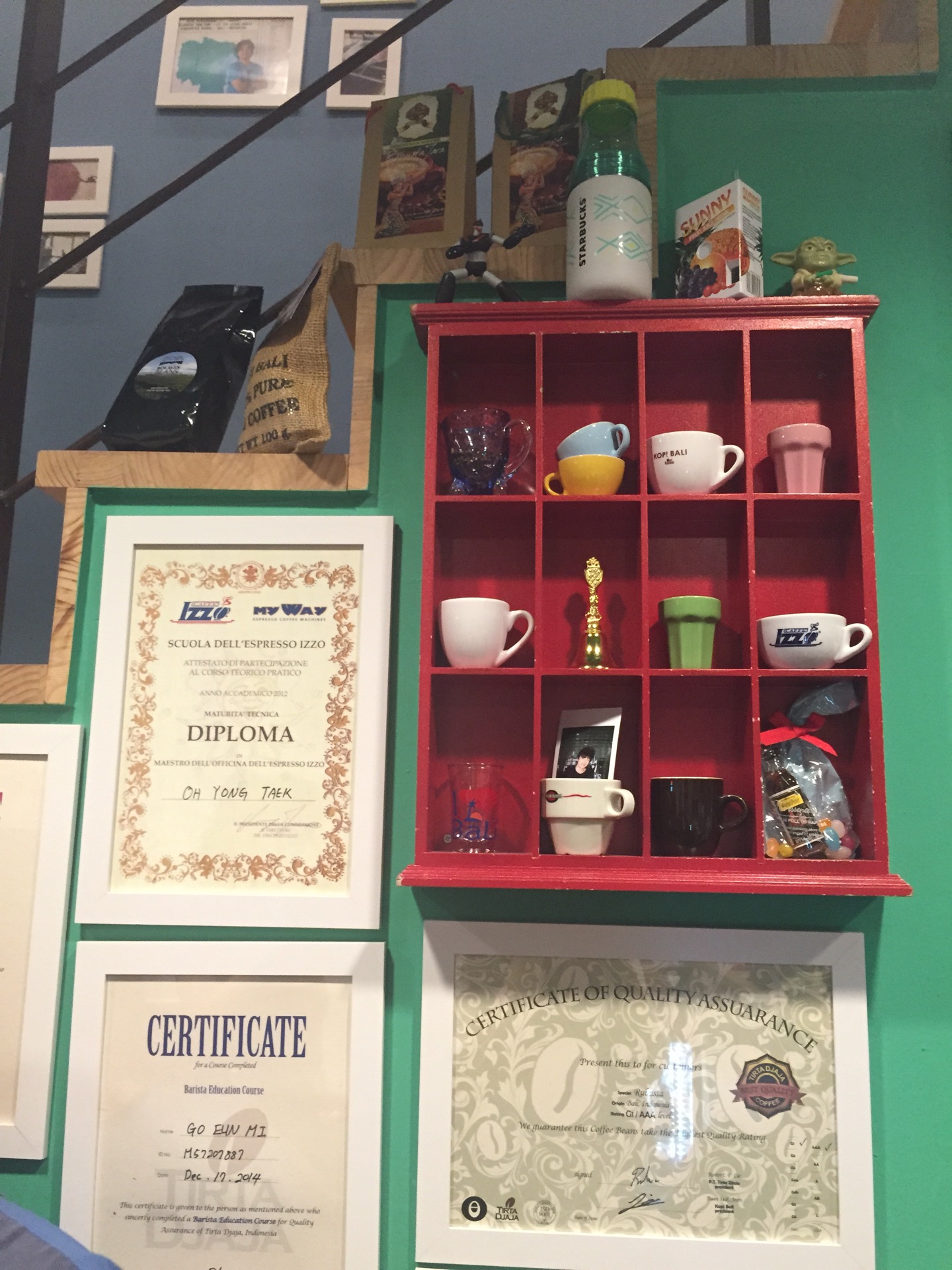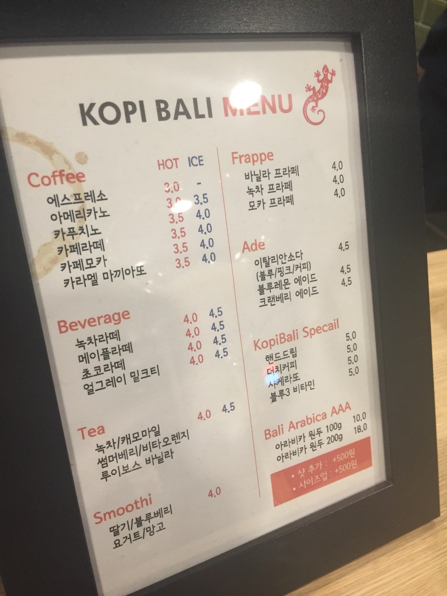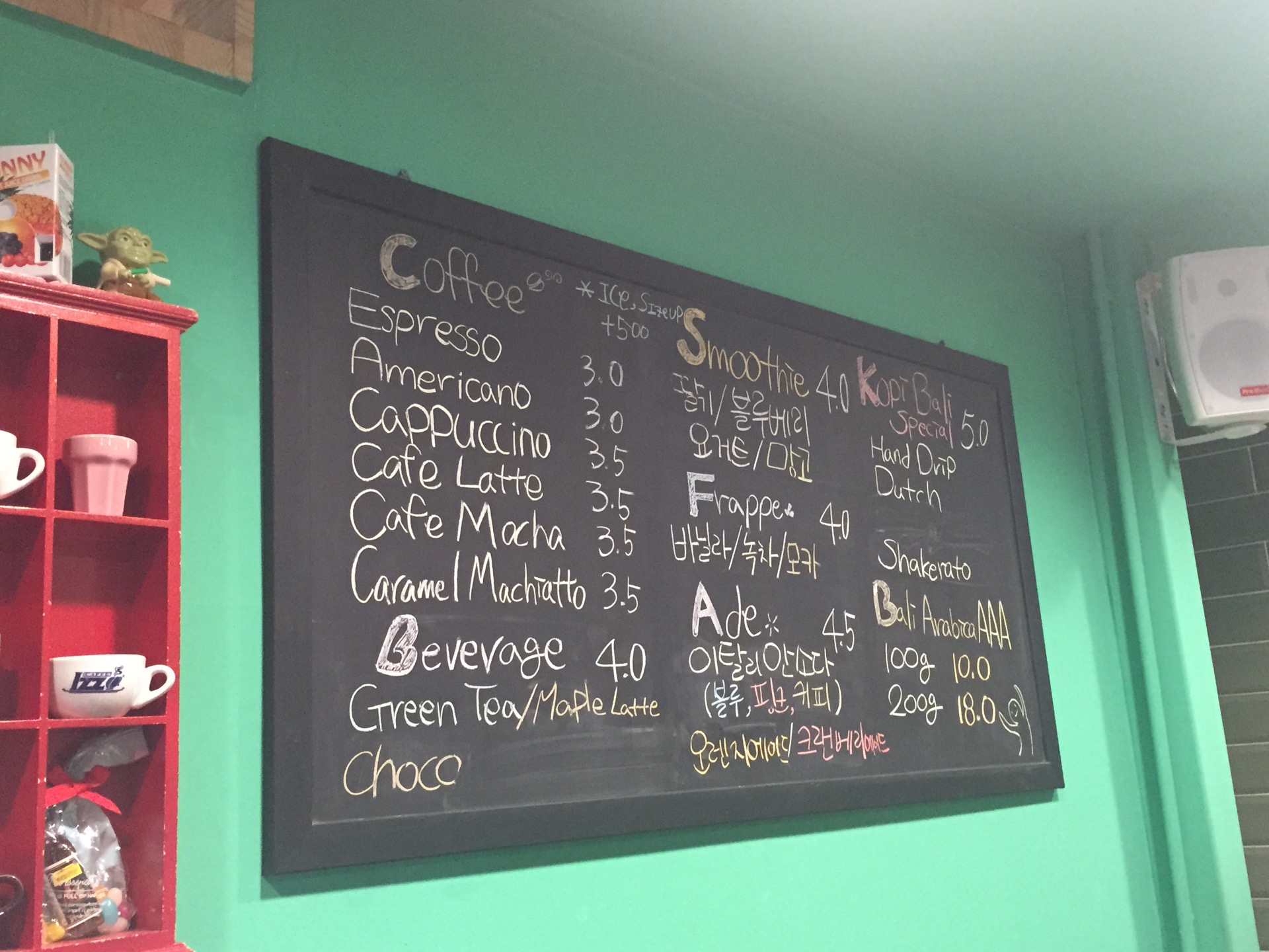 인도네시아 발리의 아라비카 생두를 직접 볶아서 이태리 IZZO 기계로 커피를 뽑아주신다.